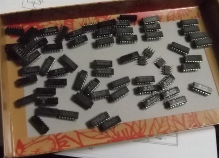 製作にはおおむね 60 個程度の TTL IC を使用しますが、ほとんど手持ちストックの中から揃えることができました。ただし、ストックの都合で、以下の IC は別の IC で代用することにします。